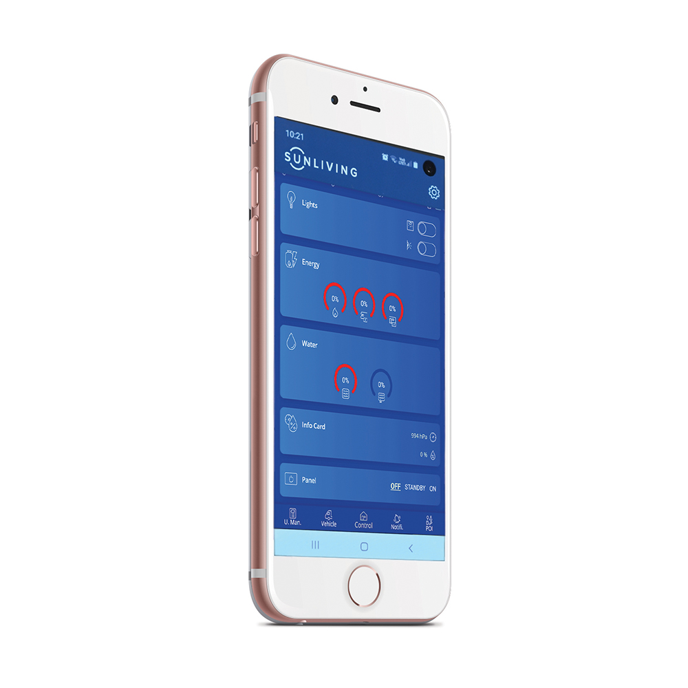 MACH, nasza intuicyjna aplikacja mobilna daje Ci pełną moc w rękach. Dzięki niej możesz zarządzać oświetleniem i temperaturą, dostosowywać otoczenie do swoich upodobań oraz kontrolować podstawowe systemy swojego kampera z dowolnego miejsca, zdalnie, korzystając ze smartfona lub tabletu. Wstępna instalacja jest standardem, MACH jest dostępny na etapie zamówienia lub później jako opcja dodatkowa, dając Ci spokój umysłu, wiedząc, że możesz monitorować i kontrolować kluczowe funkcje, aby zapewnić sobie bezproblemowe, beztroskie doświadczenie.