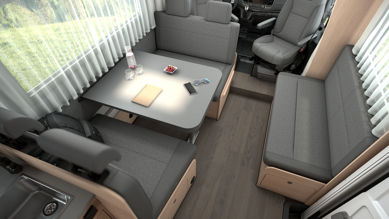 Ciesz się przytulną atmosferą i wspaniałym designem, zapewniającymi maksymalny komfort. Przemyślane układy i wygodne funkcje łączą dużą przestrzeń z przemyślanymi rozwiązaniami... dzięki czemu możesz się zrelaksować od momentu, gdy wyruszysz w drogę, i w każdej sekundzie spędzonej w środku.